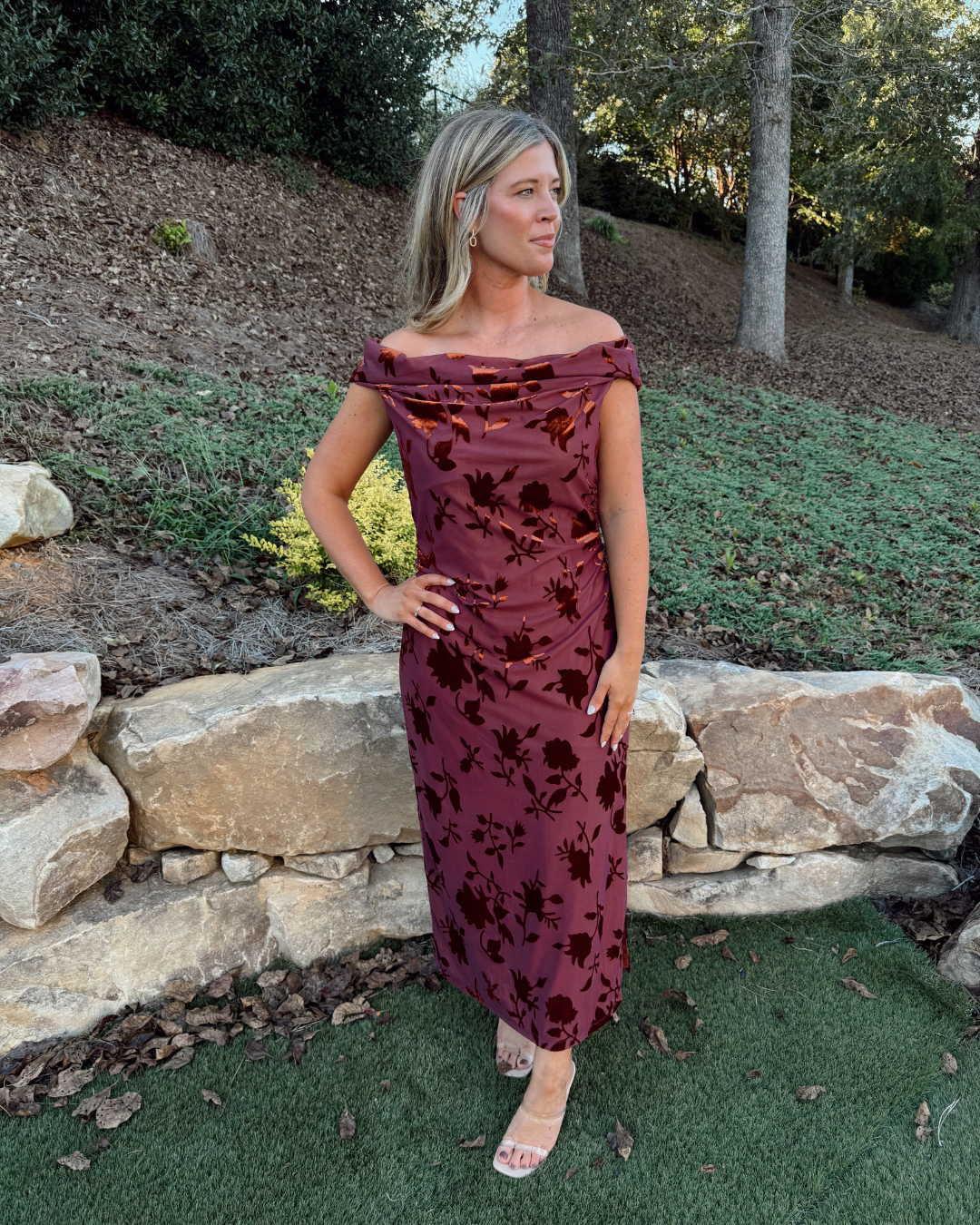 Step into the season with timeless elegance in our velvet jersey knit midi dress. The rich velvet jersey fabric drapes beautifully while offering just the right amount of stretch for comfort. Sophisticated yet effortless, this piece is perfect for weddings, evening soirées, and special celebrations throughout the cooler months.