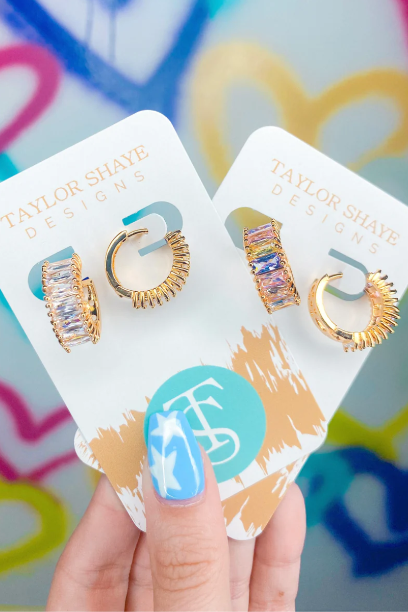Crystal Baguette Huggies