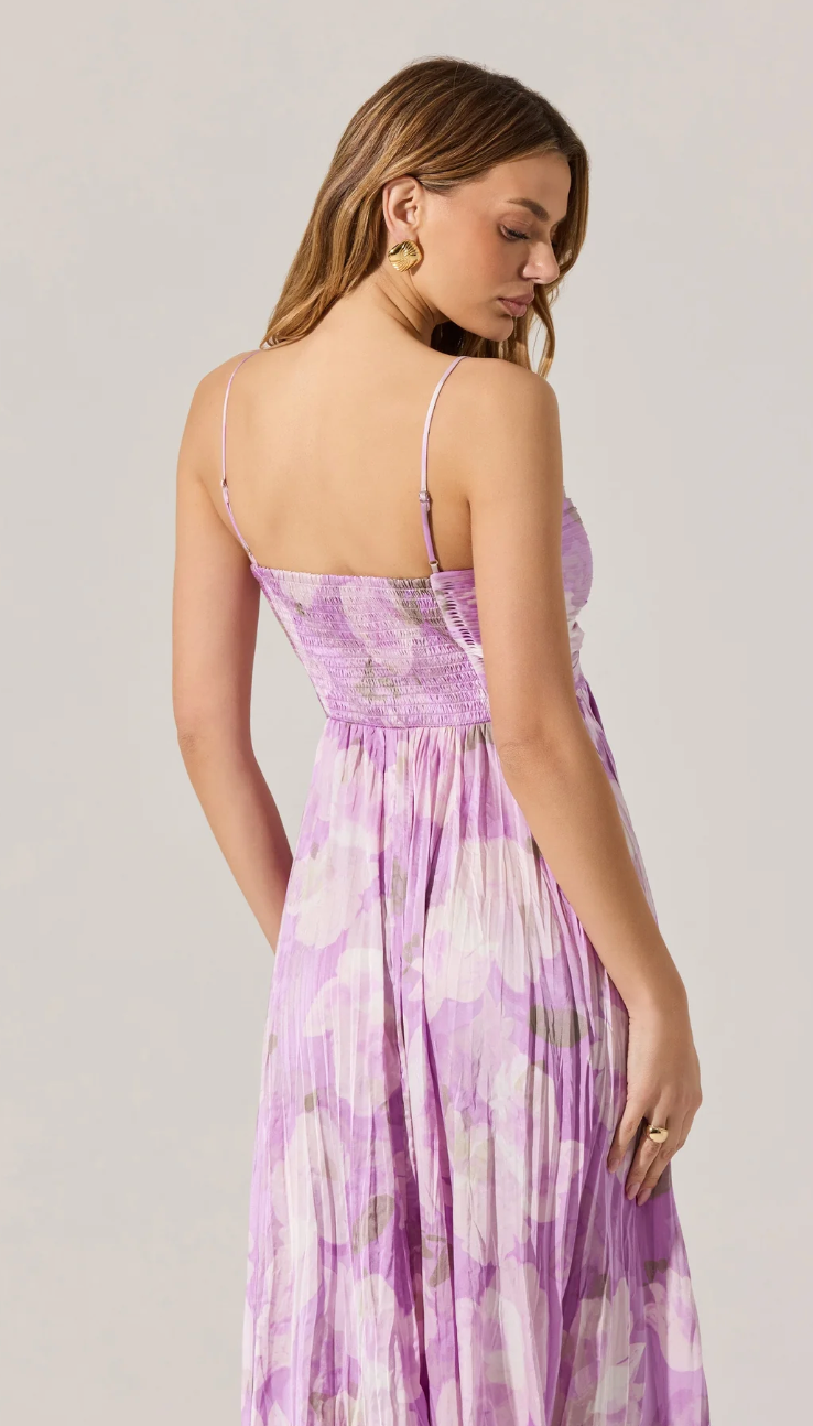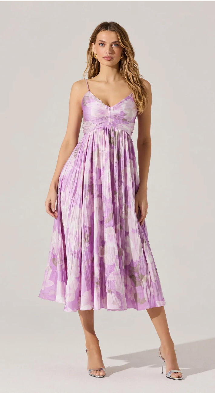 This lilac dress is both lightweight and pleated for a comfortable and flowy fit. Perfect for any occasion, this dress is a must-have addition to your wardrobe.